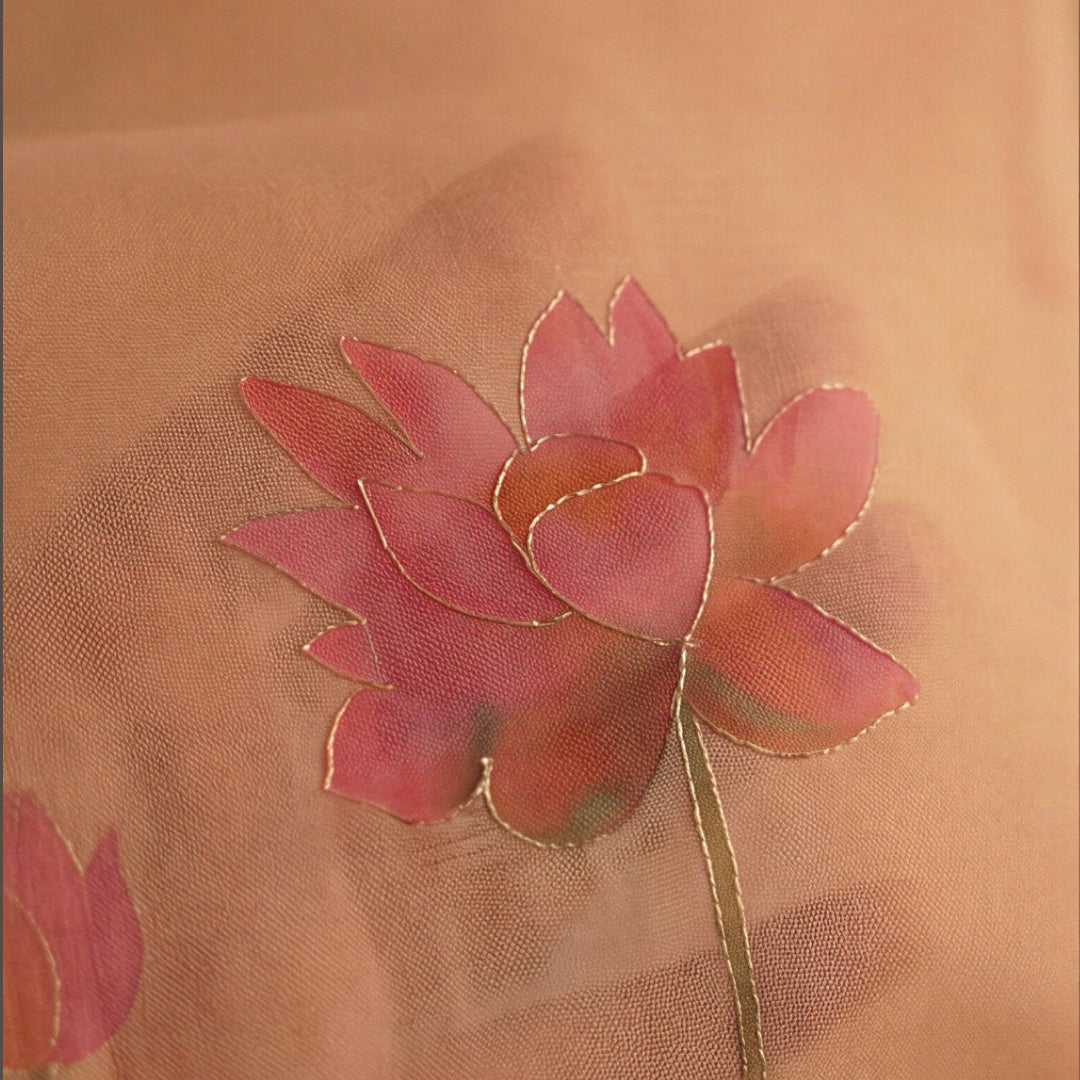 Beige Organza Silk Saree