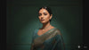 Pair it with a silver zari blouse or a contrasting deep magenta blouse, along with crystal jewelry and softly curled hair.